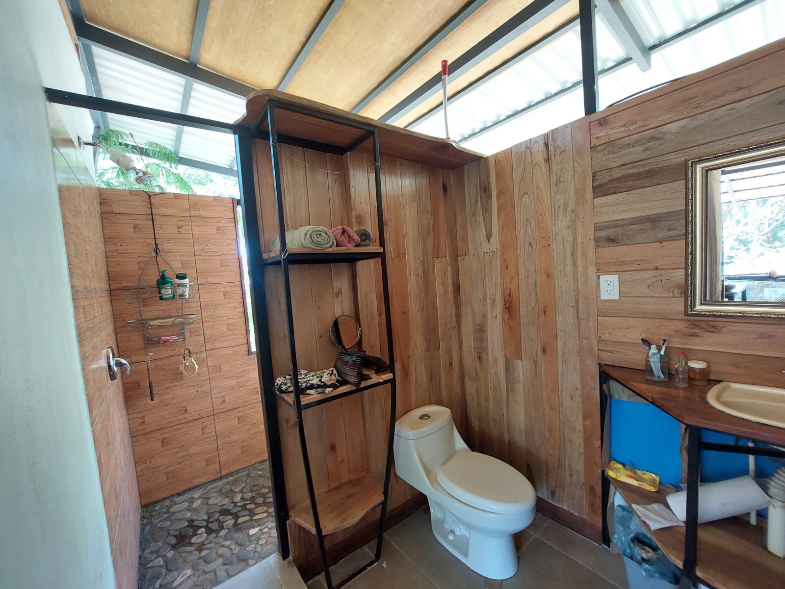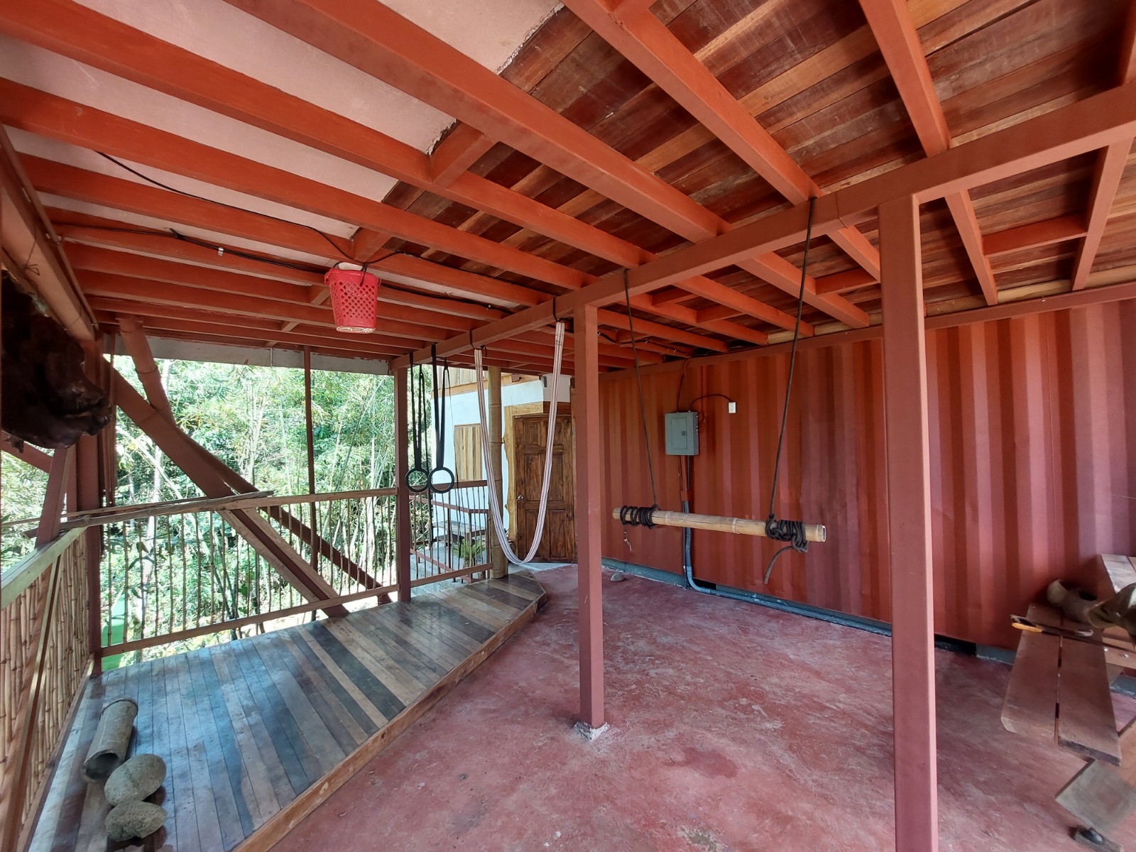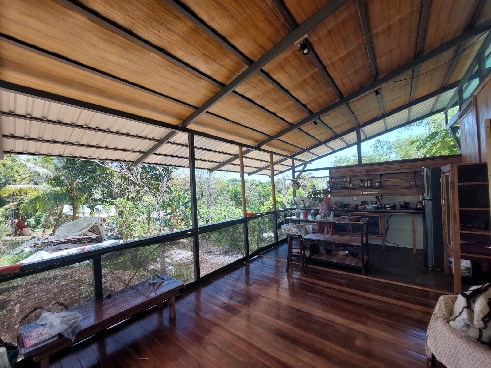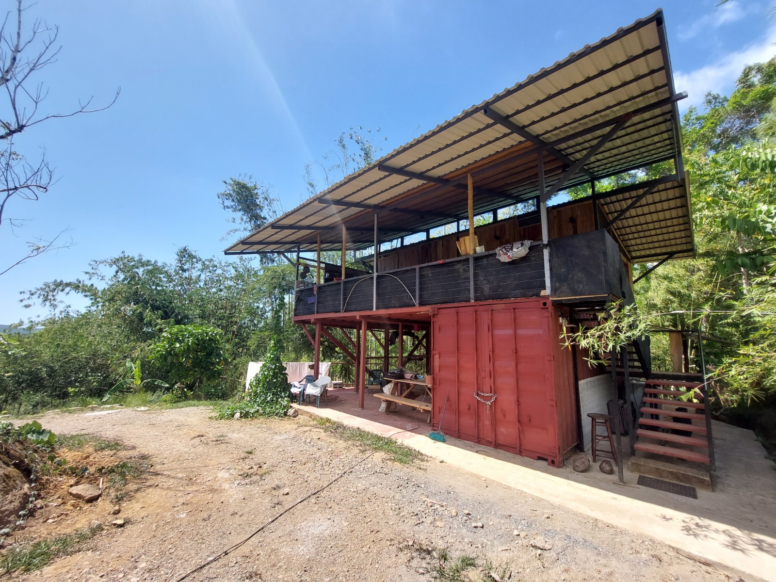 The house is built on a metal container and the rest of the expansion was made in wood, currently the container is used only for storage but can be conditioned to be habitable. The open style makes the place very fresh and with lots of natural light inside.
