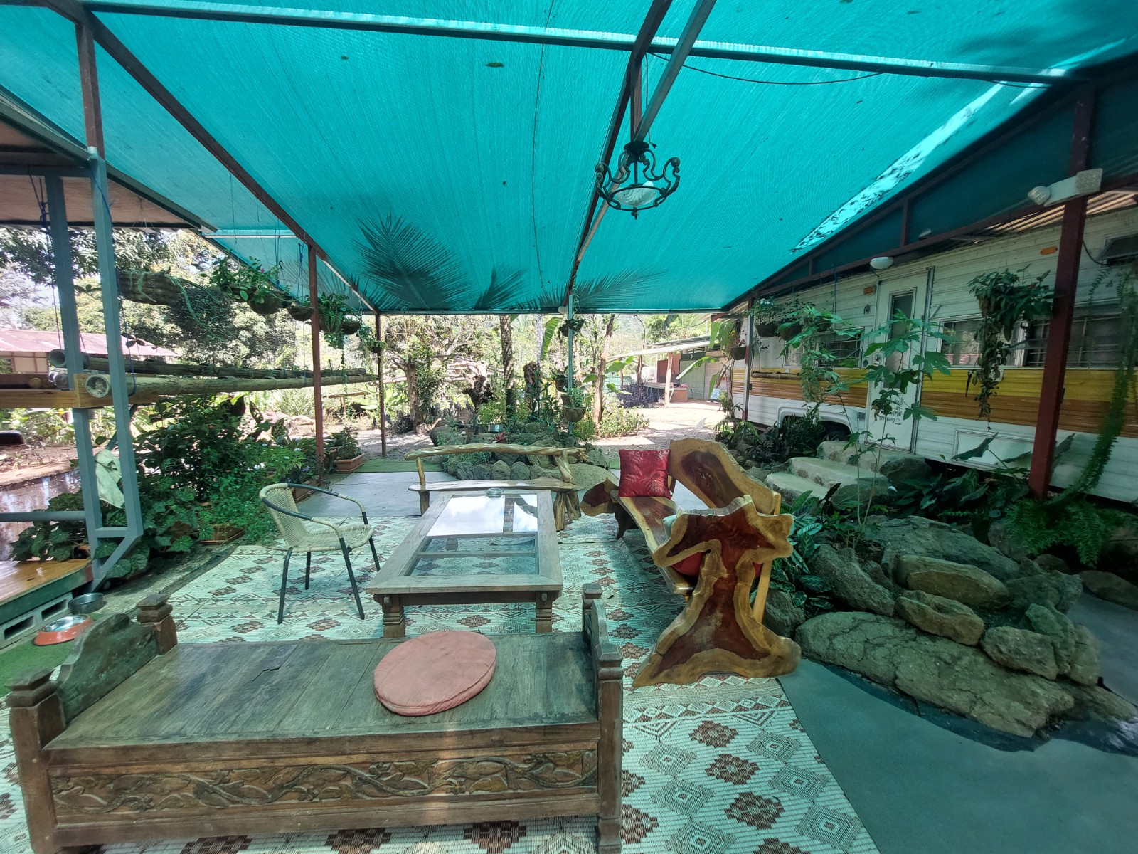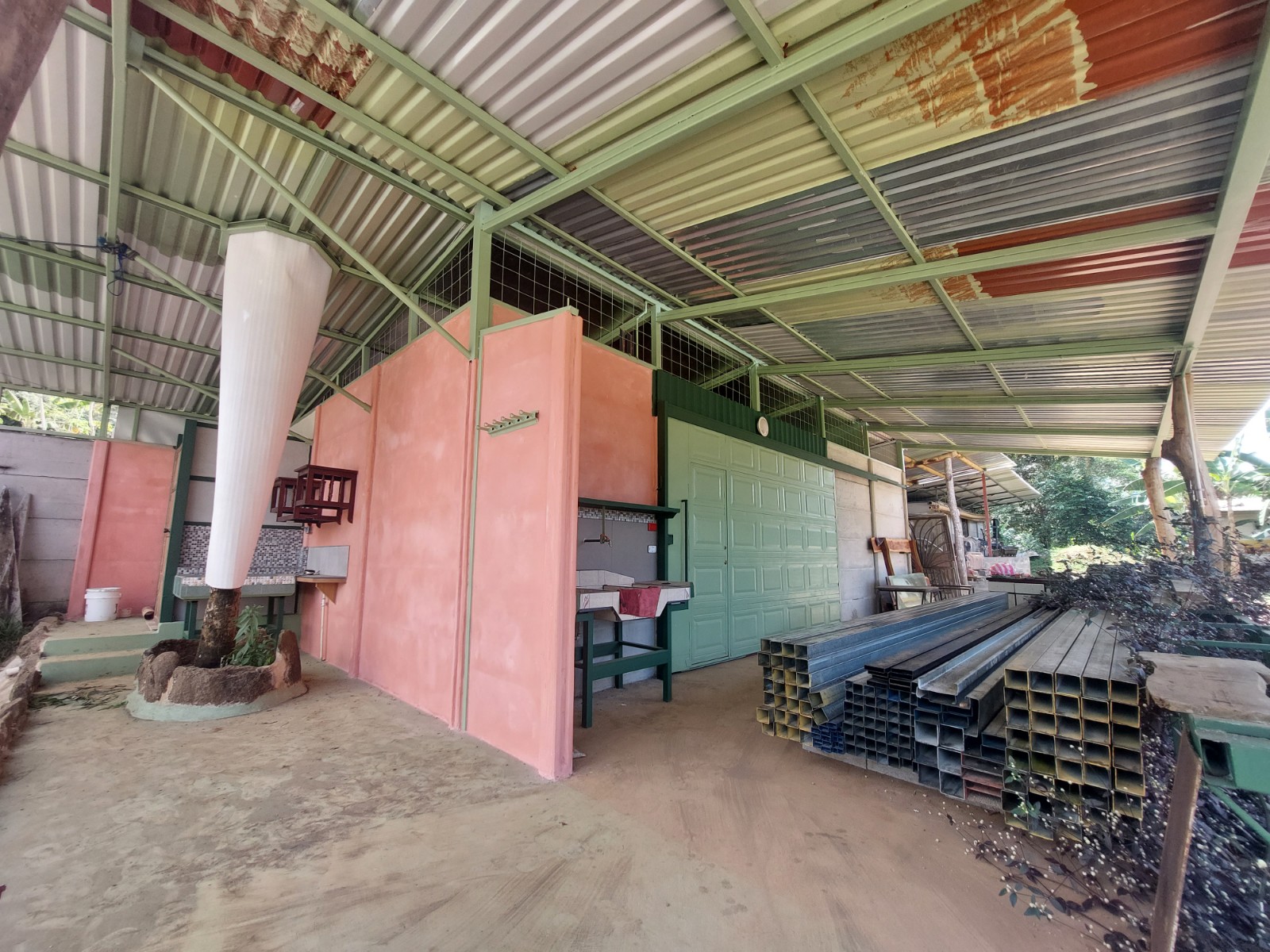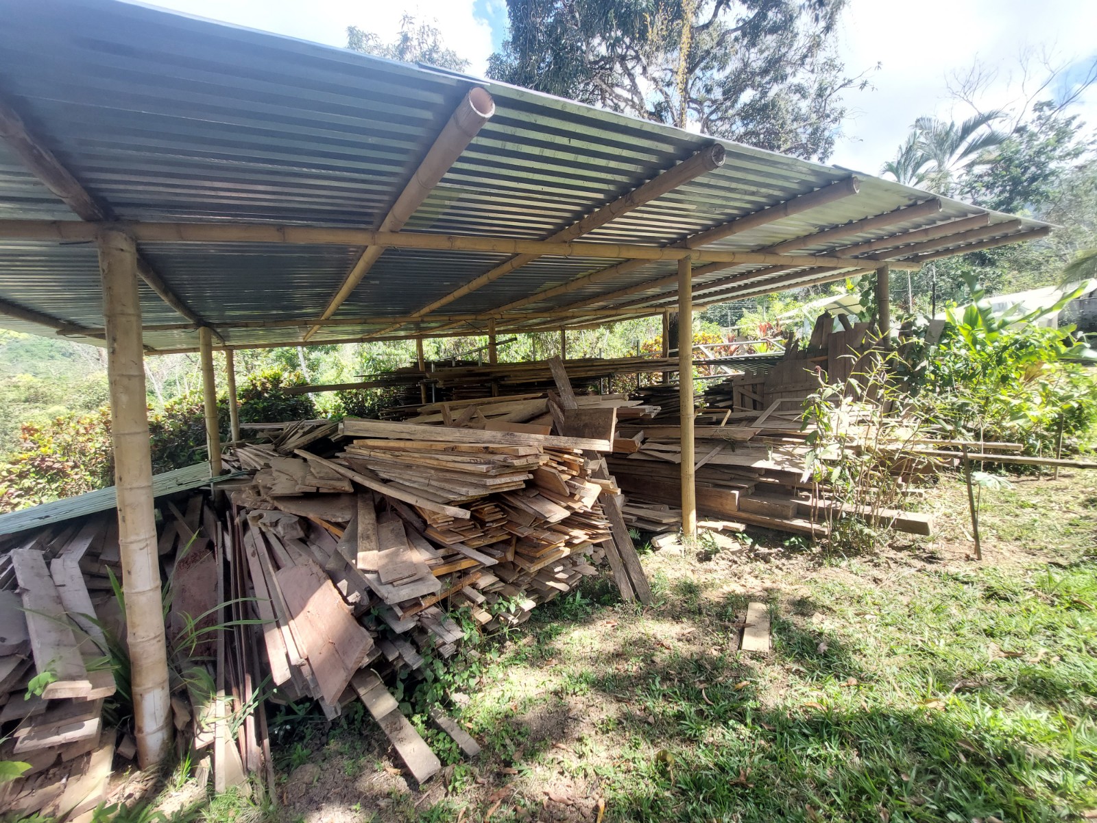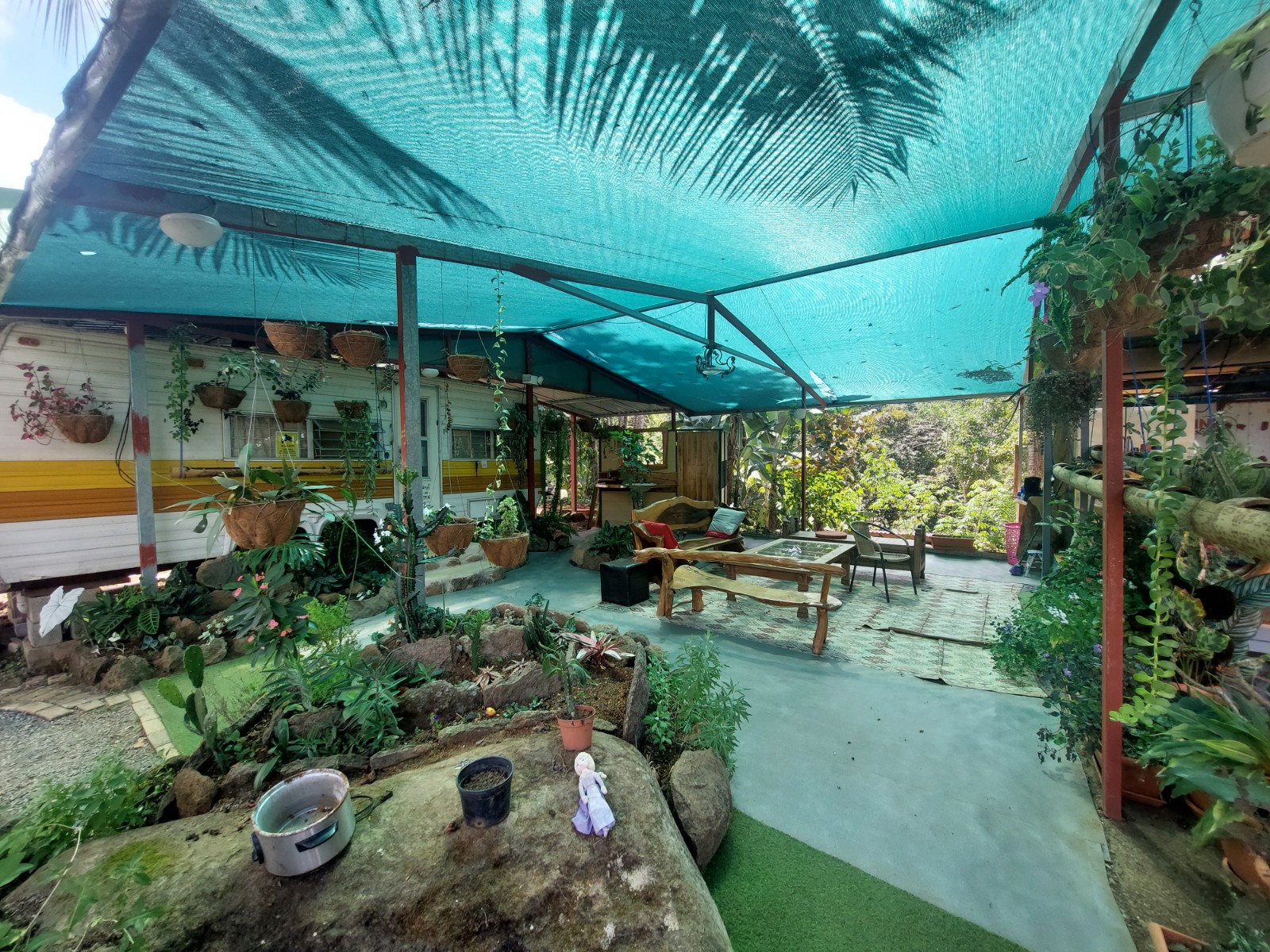 The property has a large electric gate access to give total security and privacy to the place. Already inside we can see to the left a large warehouse where wood and different construction materials are stored (all materials and wood are negotiable), then we can find the house area where the room is the camper, there is covered living room, kitchen and bathroom on the outside and beautiful gardens that adorn the place.
