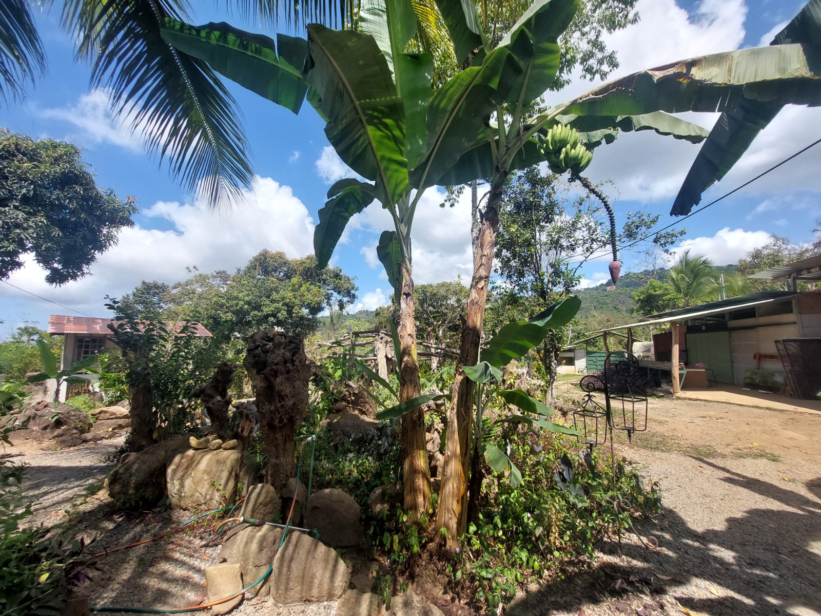 Additionally there is an old two-story structure that is being remodeled and would function as a second house, plus different flat buildable areas with construction potential, additionally has an internal road that crosses a creek where you can access a completely separate buildable area with beautiful mountain view.