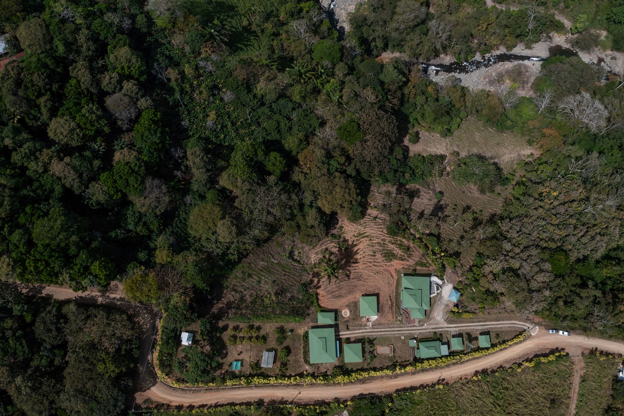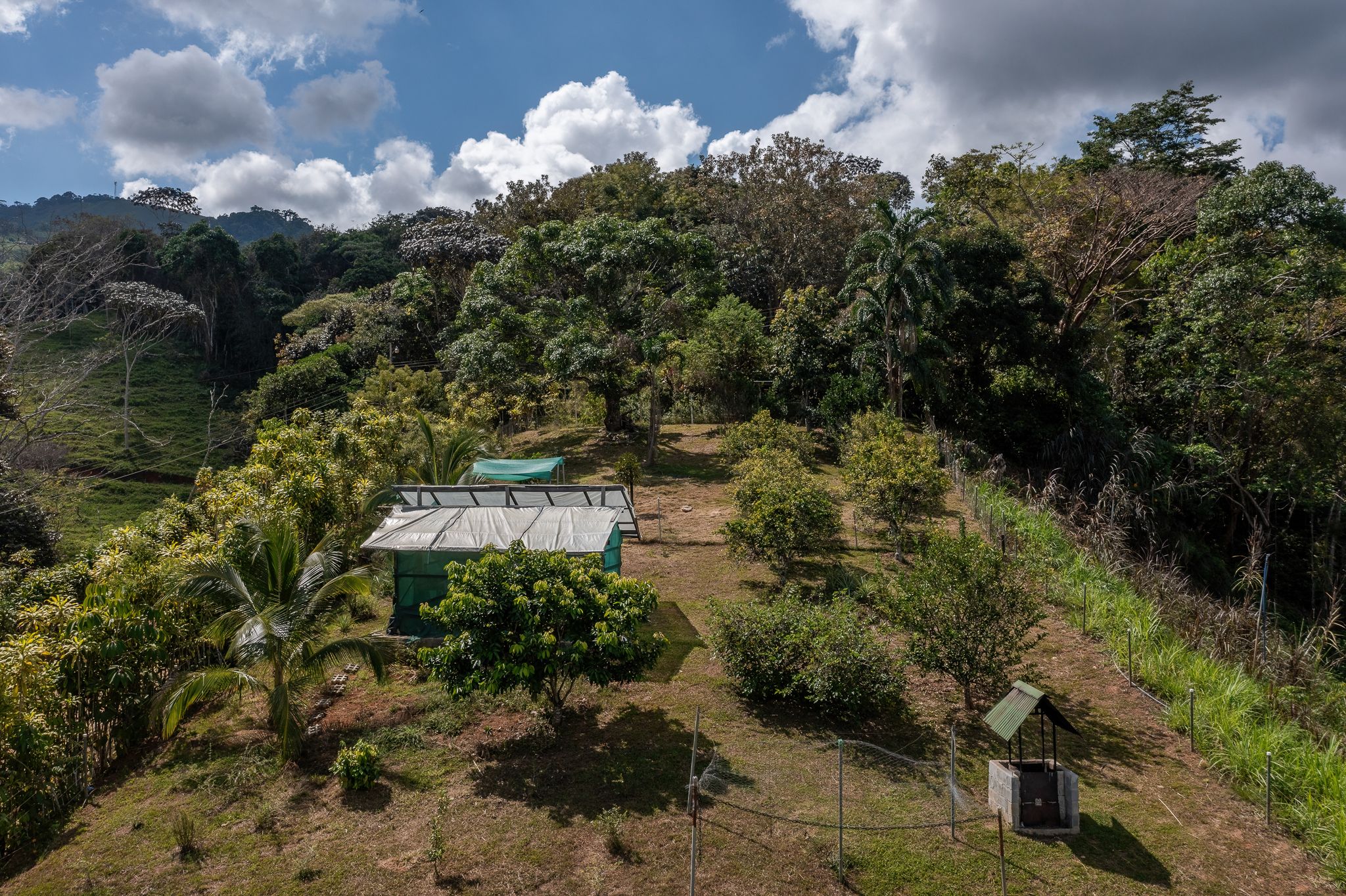 The land is a canvas for expansion, with ample space for gardening. The property already hosts flourishing gardens with a variety of fruit trees, including bananas, mandarina, orange, aguacate, blackberry, blueberry, strawberry, mango, guanabana, and papaya. The property borders the river, has a seasonal spring, and benefits from legal water and electricity.