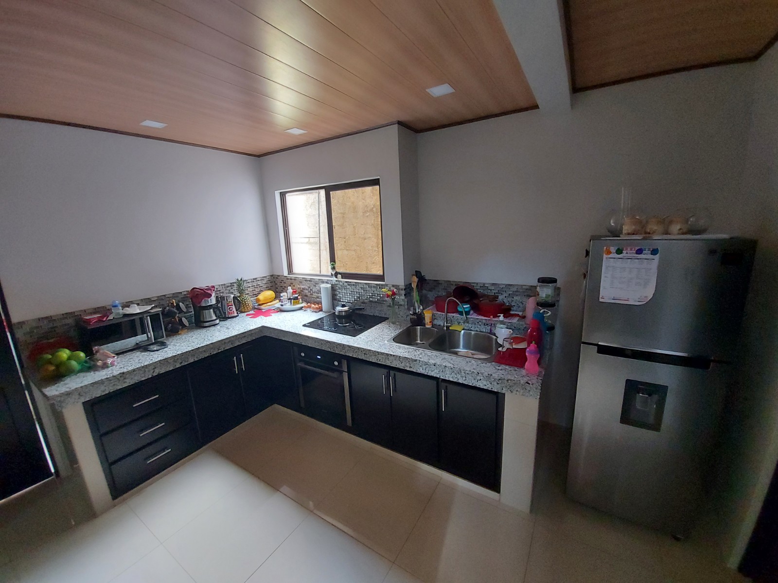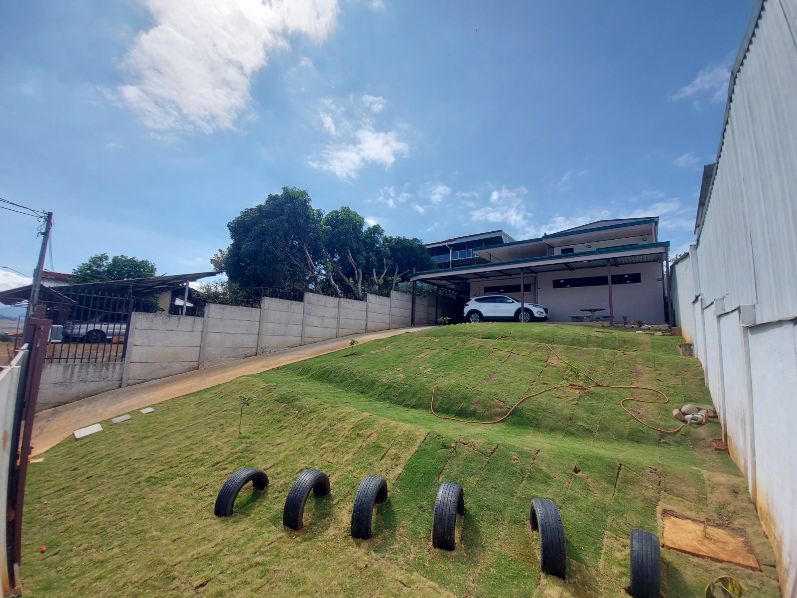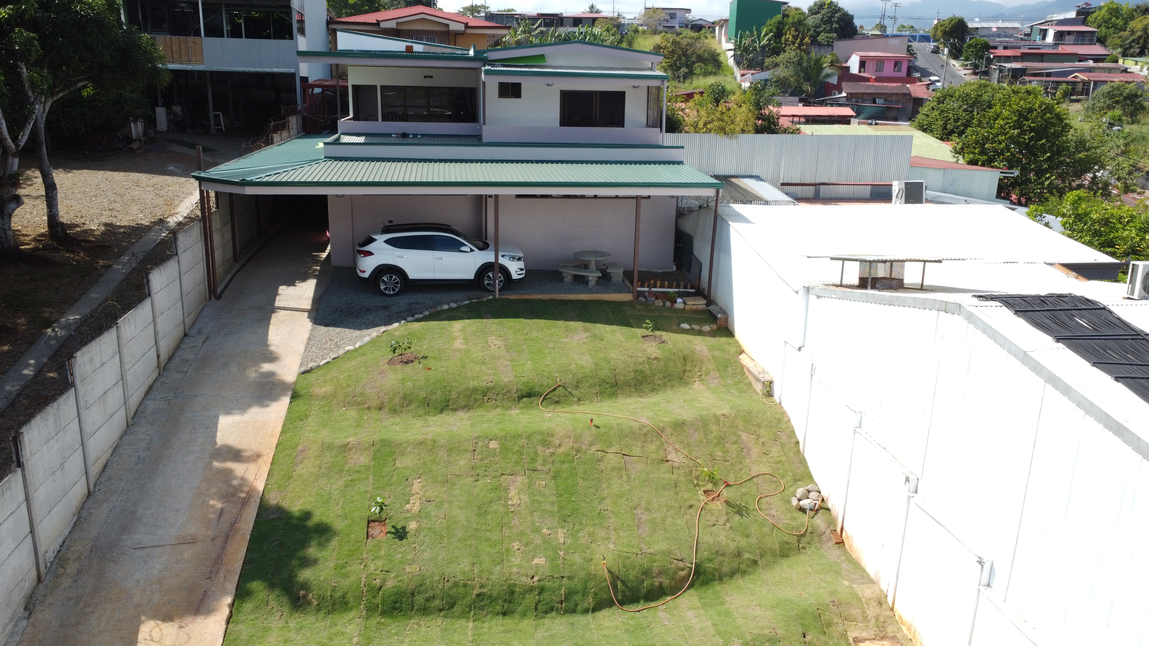 The house has electric front gate and a green area is lawn with lots of potential to build more or make planting. The first thing we find is a large open space with its own half bath ideal for all kinds of activities. Once inside the house we can find an office area with large sliding door, living room, kitchen with its own furniture and built-in kitchen, laundry room and backyard, all this is on the first level. On the second level we find 3 bedrooms, 2 full bathrooms and 2 terraces, one of the bathrooms is in the master bedroom next to one of the terraces. These terraces offer a beautiful view of downtown.
