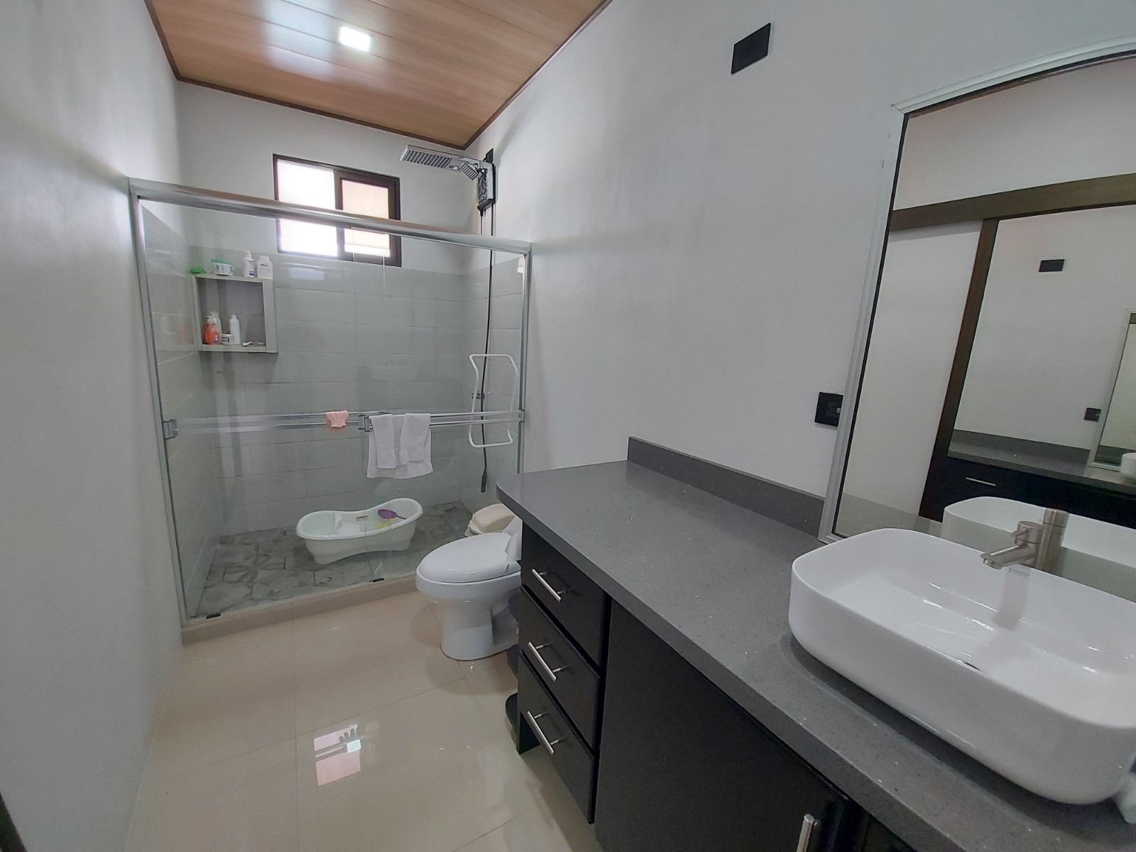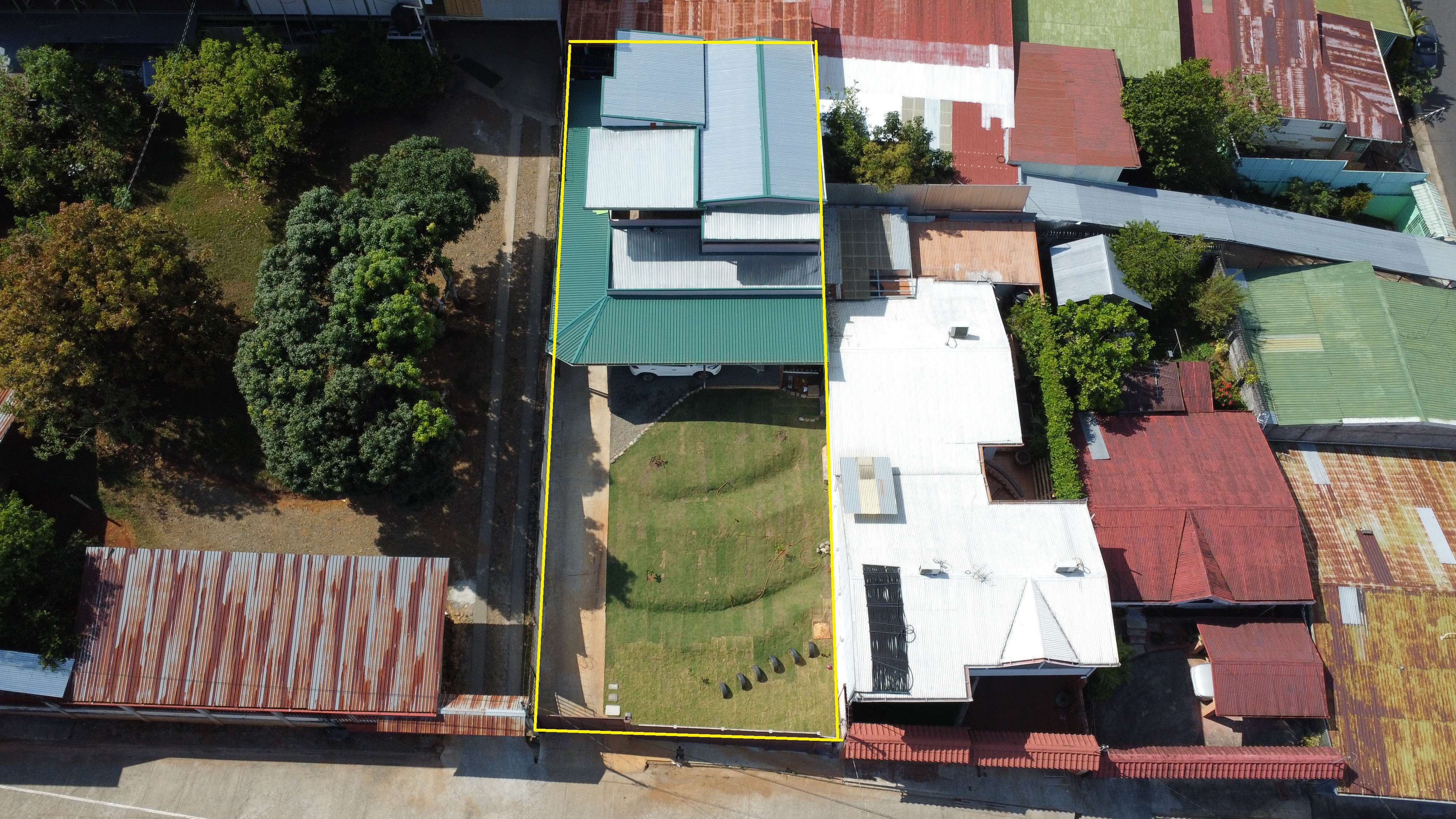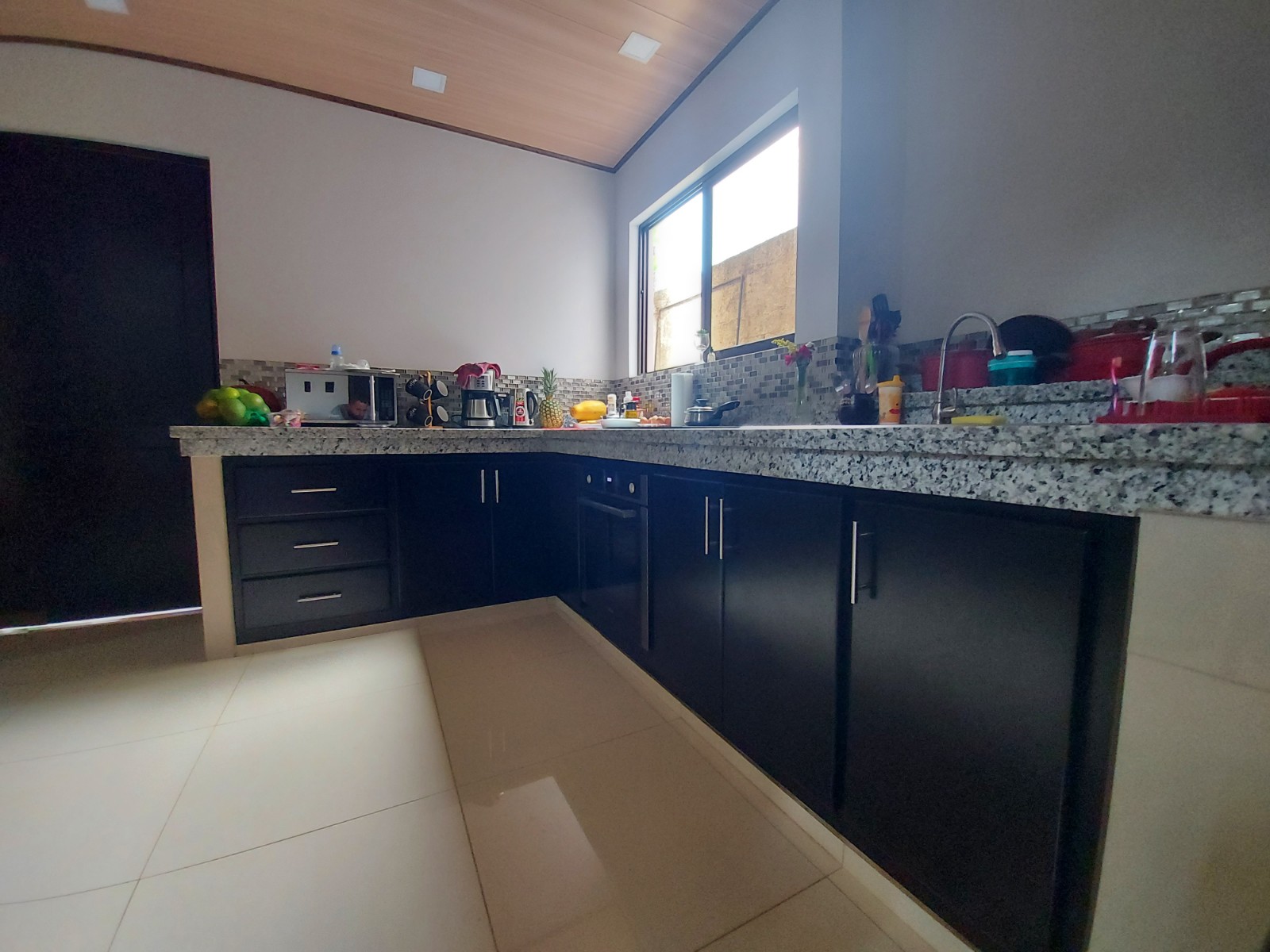 The house has electric front gate and a green area is lawn with lots of potential to build more or make planting. The first thing we find is a large open space with its own half bath ideal for all kinds of activities. Once inside the house we can find an office area with large sliding door, living room, kitchen with its own furniture and built-in kitchen, laundry room and backyard, all this is on the first level. On the second level we find 3 bedrooms, 2 full bathrooms and 2 terraces, one of the bathrooms is in the master bedroom next to one of the terraces. These terraces offer a beautiful view of downtown.