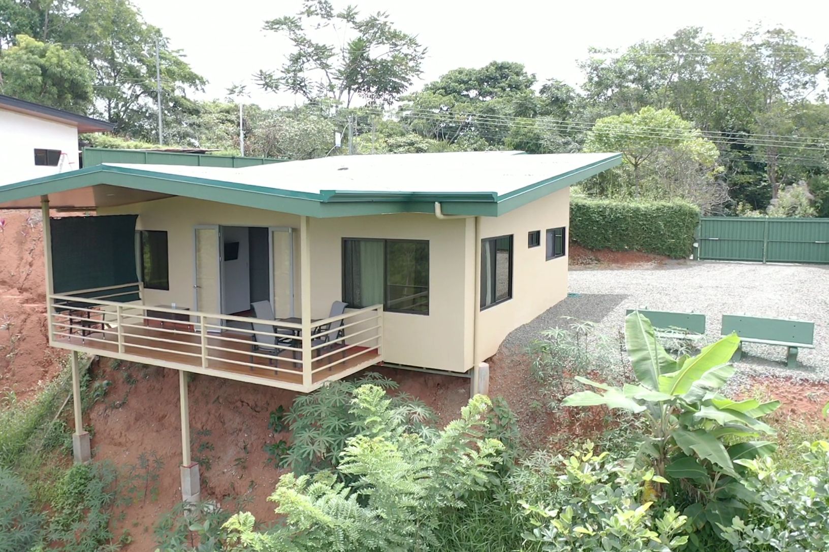 Connected to the laundry room is the covered parking area to protect your vehicles from the elements. Whether it’s scorching sun or heavy rain, your vehicles will remain safe and sheltered. From the parking area through to the house is covered to ensure dry passage in the wet season