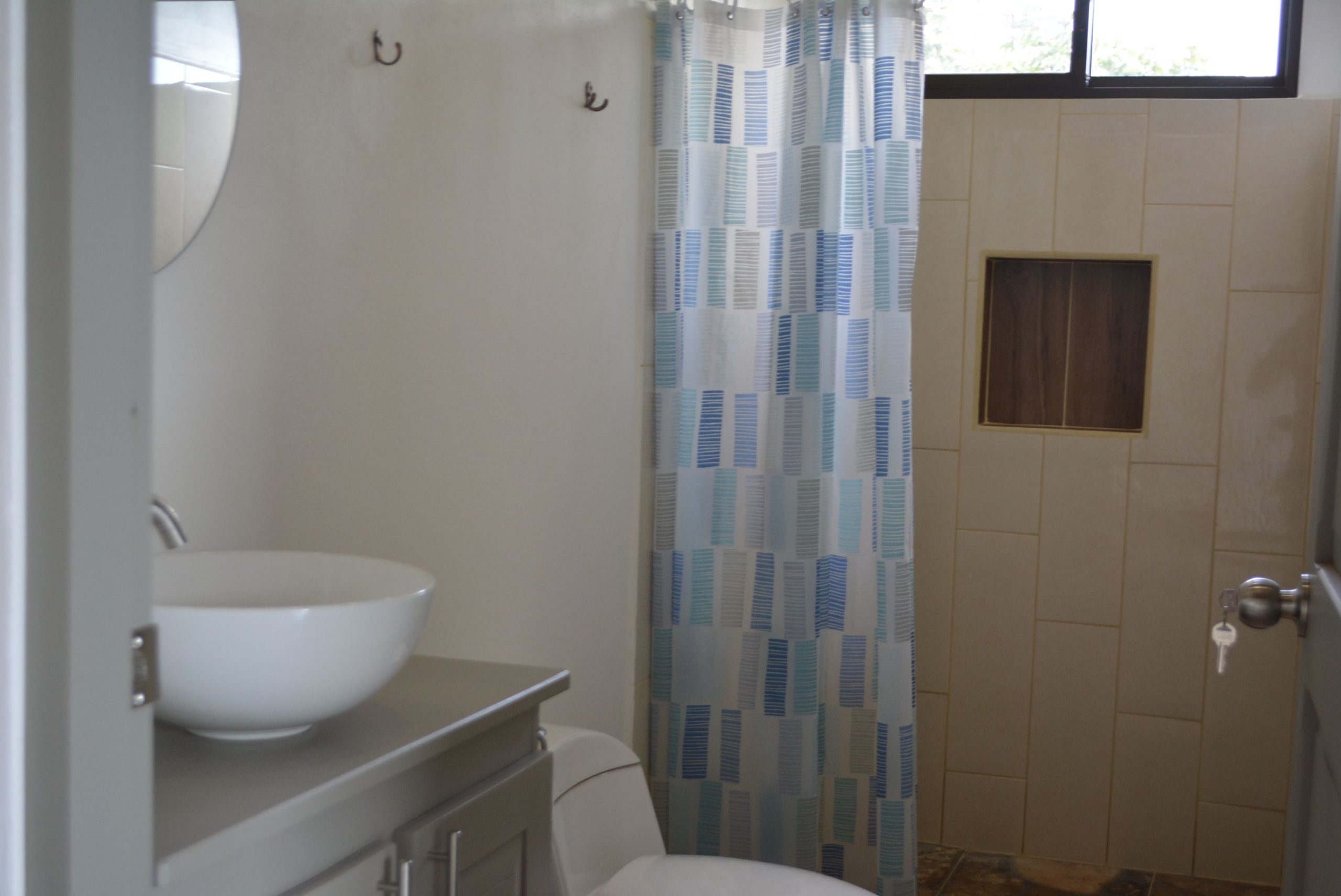 Two bathrooms ensure convenience and privacy for all occupants. The master bathroom is contently located for easy access, the second bathroom has a full shower is located next to the laundry area for rinsing off after a surf or hike.