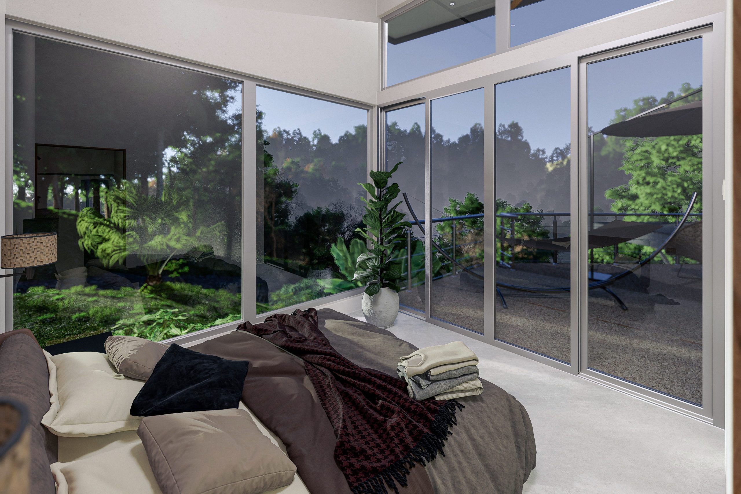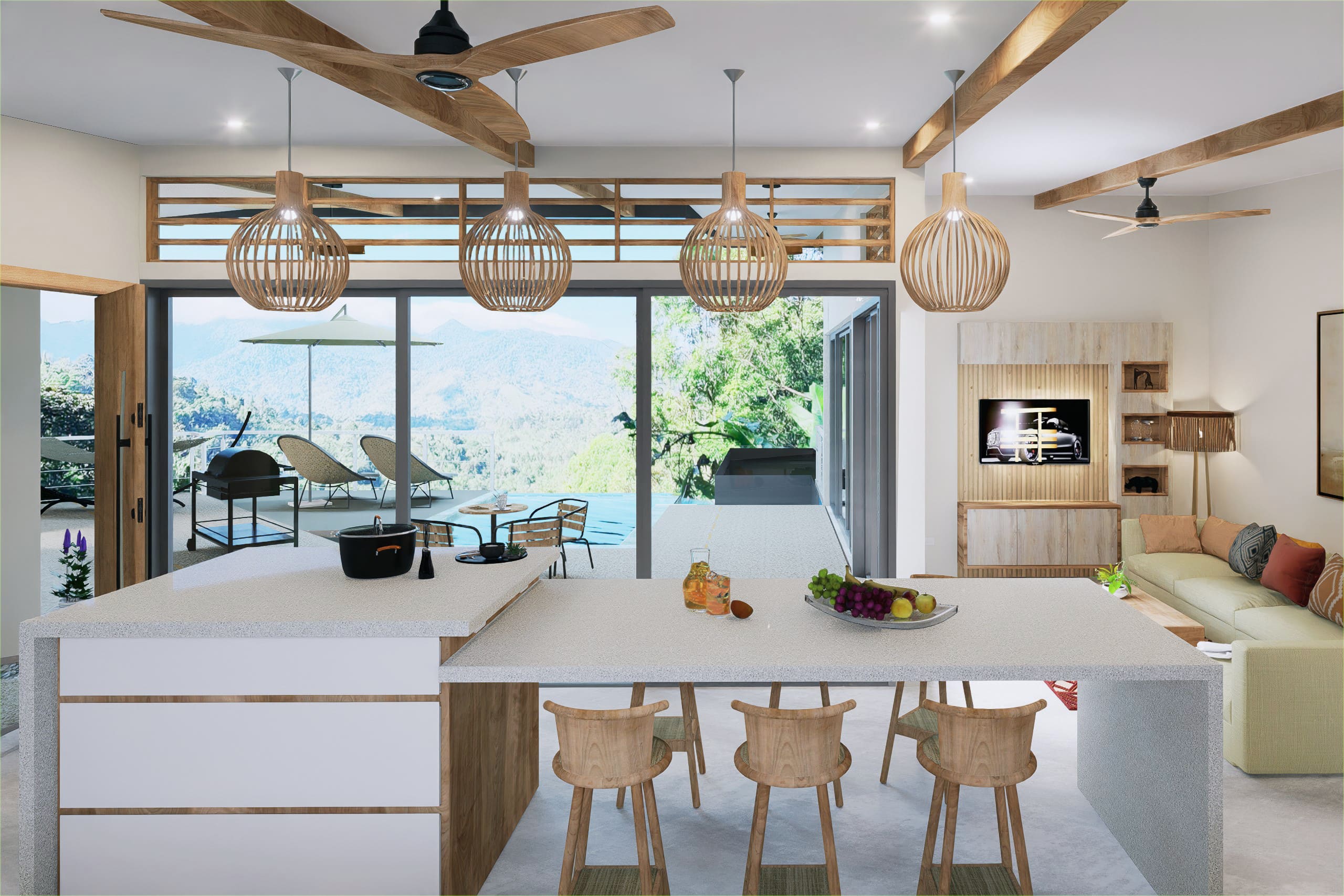 Beyond the sliding glass panels lies the potential of an infinity pool, inviting you to unwind and soak in stunning views of the surrounding forest and majestic mountains—your private oasis, a canvas for your vision. The residence is thoughtfully designed to blend with the jungle surroundings, promising a harmonious living experience with a touch of nature.