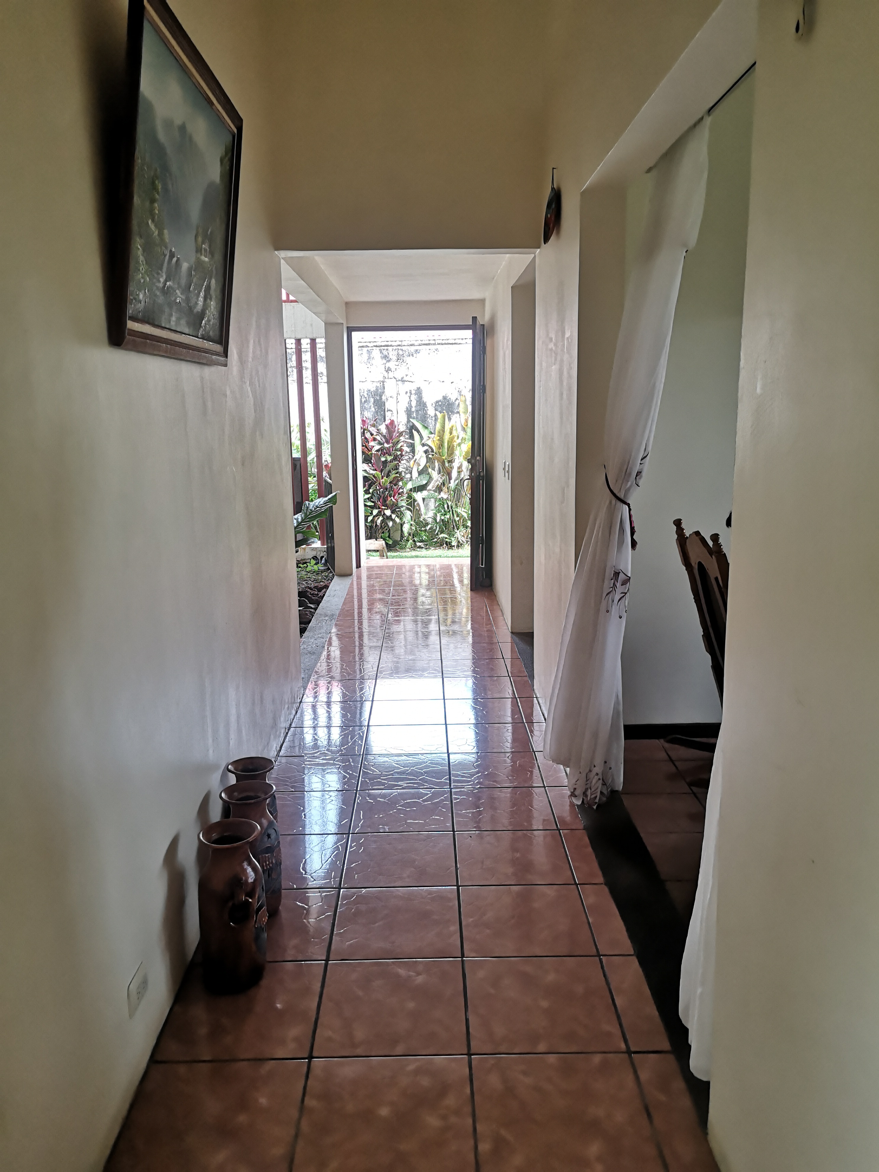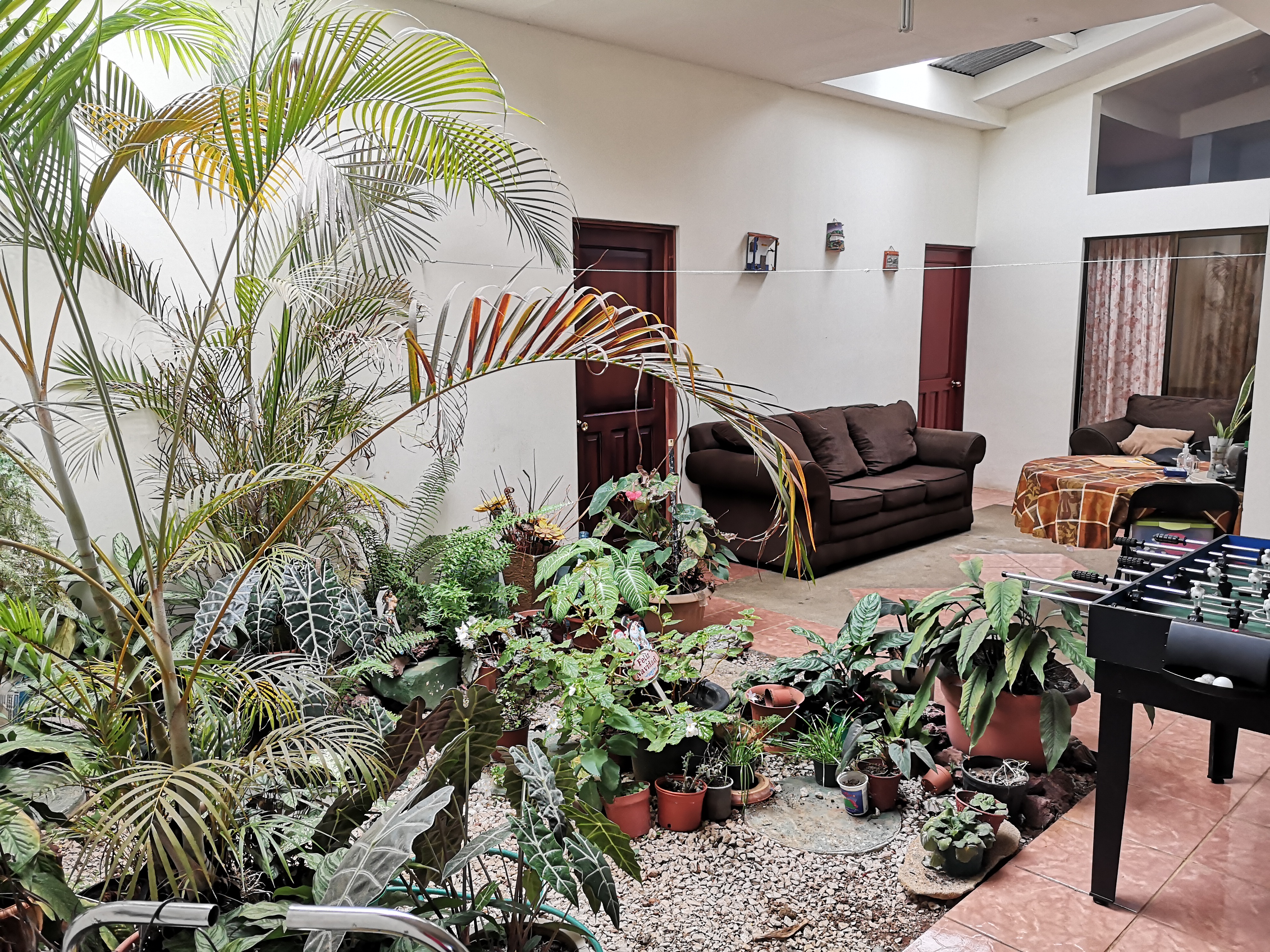 It has a wide front with green area around the whole house and exits from various parts. It has enough natural light which makes it perfect to have plants indoors.